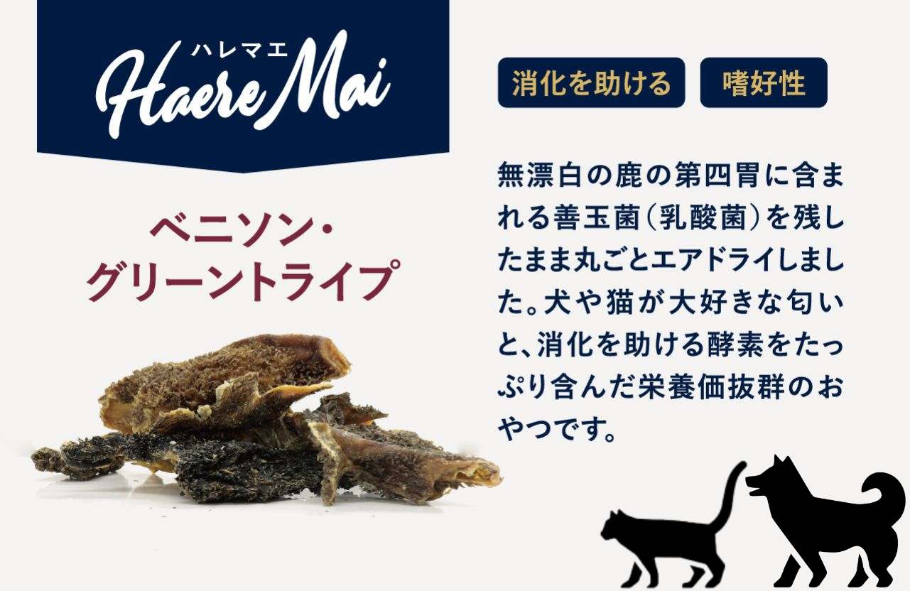 【商品説明】無漂白の鹿の第四胃に含まれる善玉菌(乳酸菌)を残したまま、丸ごとエアドライしました。犬や猫が大好きな匂いと、消化を助ける酵素をたっぷり含んだ栄養価抜群のおやつです。