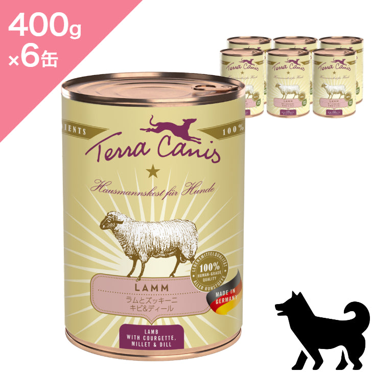 ラムの心臓と筋肉(35%)、にんじん、ズッキーニ(13%)、ラムの肺(11%)、キビ(8%)、リンゴ、セロリ、亜麻仁油、オイスターシェル、ビール酵母、バジル、ディール(0,2%)、フェンネルの種、ミネラルクレイ、ポーレン、海藻、ビタミンA、ビタミンD3、ビタミンE、銅、ヨウ素、亜鉛