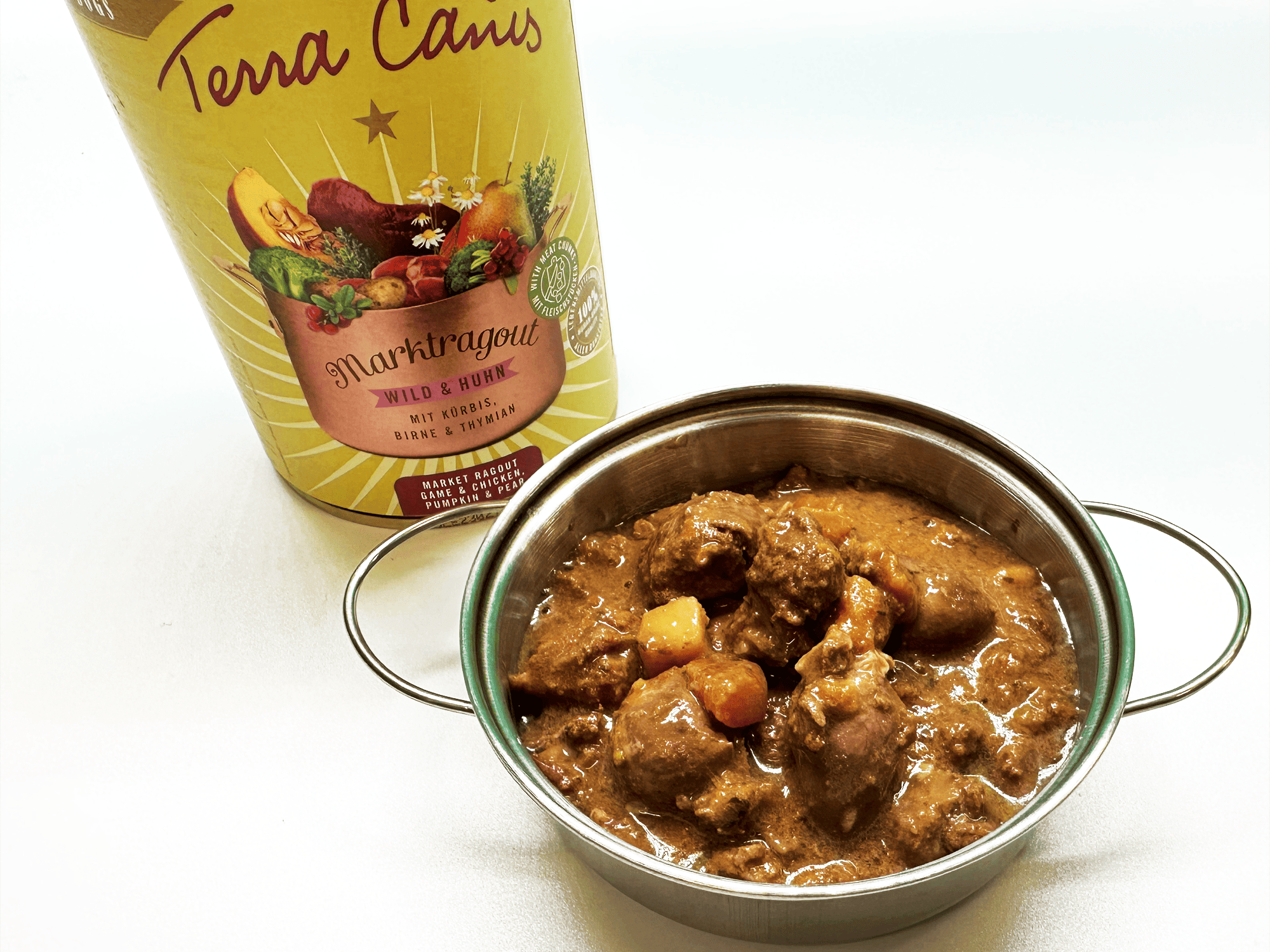 家庭で調理されたラグーのように柔らかくジューシーなお肉・さいの目に切った色とりどりの野菜と果物のミックス・そして心のこもった愛犬のためのユニークで美味しさが伝わる、絶品の香りの食事となっています。ぜひ香りと共にお楽しみください。