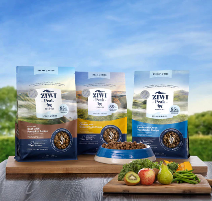 ZIWI Peakへの切り替え:現在与えているフードにZIWI Peakを少しずつ混ぜ、7~10日間かけて切り替えを行ってください。フード移行の際は、今までのフードの量を減らしながら、徐々にZIWI Peakスチーム&ドライの量を増やしてください。保管方法:常温で保管してください。冷蔵で保管いただく必要はありません。袋を密閉し、直射日光の当たらないところで保管してください。開封から8週間以内に使い切ってください。