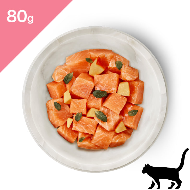 サーモンフィレ(90%), ズッキーニ(4%), トマト, キャットニップ, ミネラル類