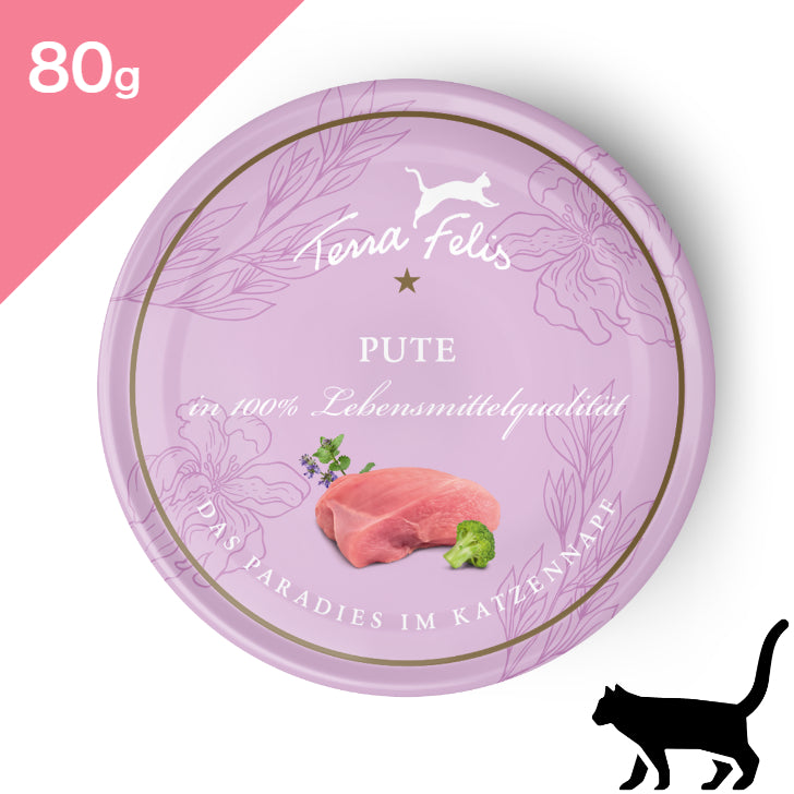 ターキーの心臓 (49%), ターキーの肝臓(17%), ターキーの皮 (14%), ターキーの筋肉 (10%), ブロッコリー(4%), トマト, 菜種油, キャットニップ, ミネラル類