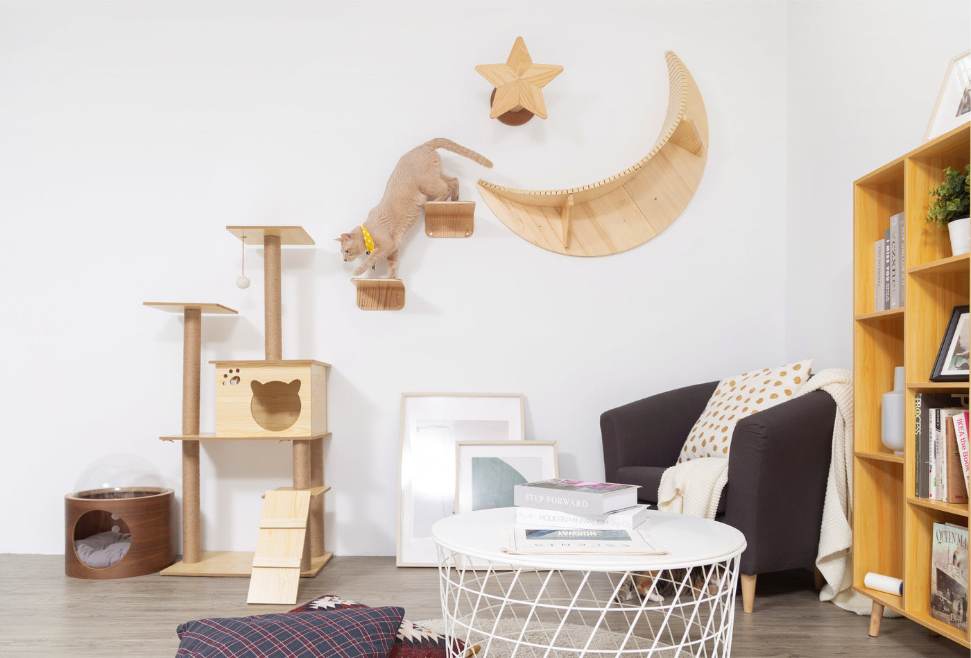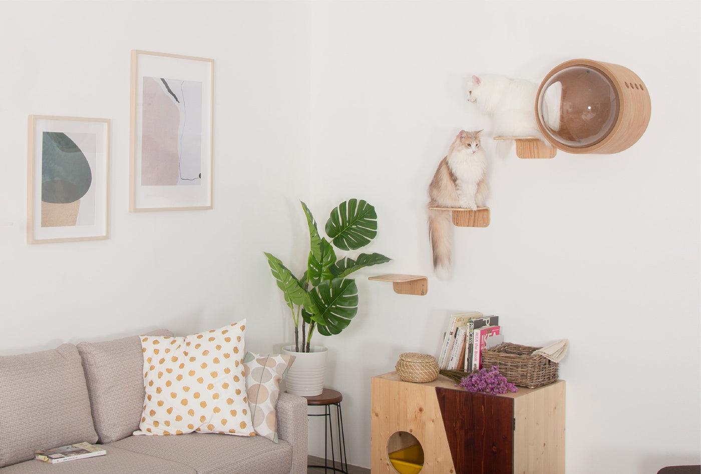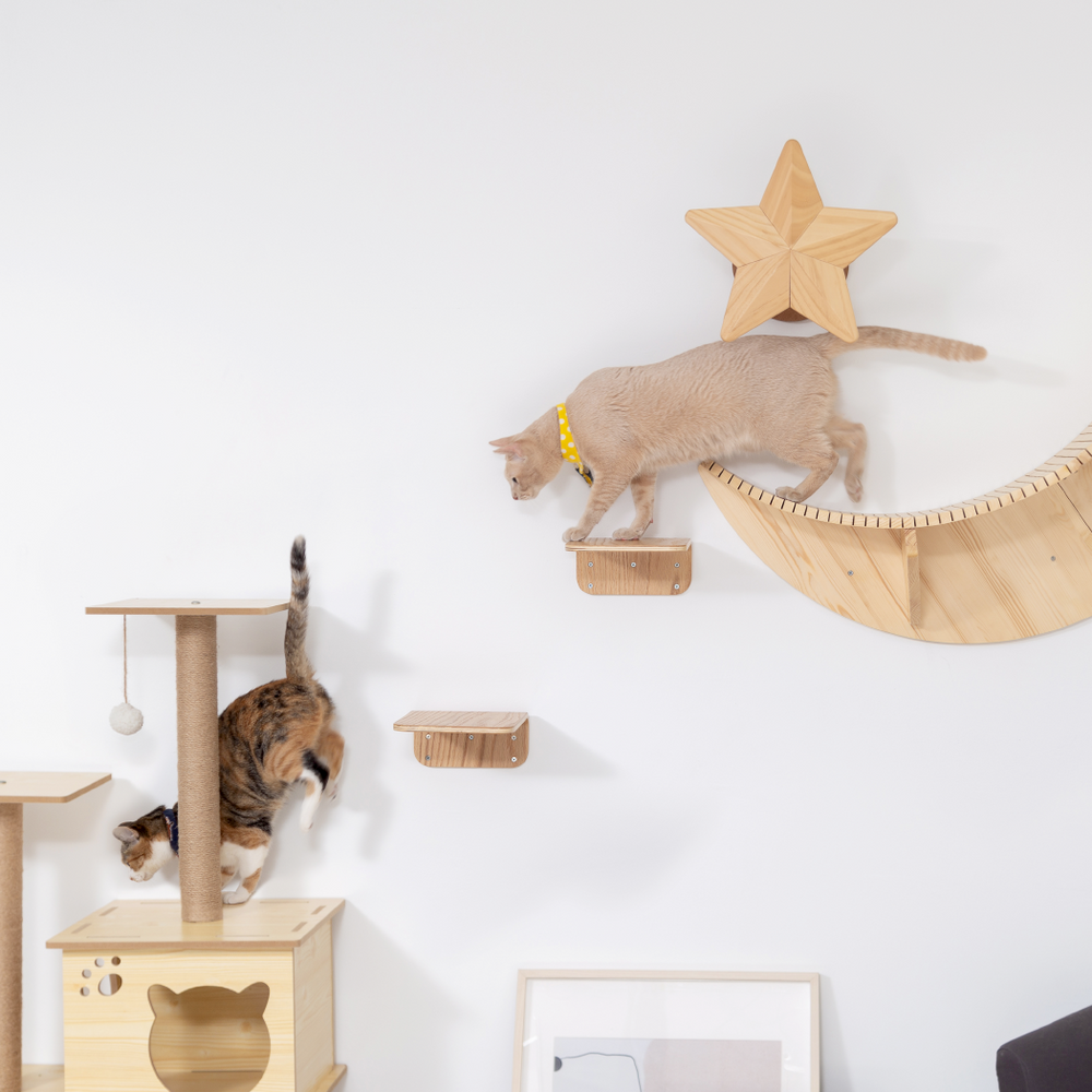 ステップ間の水平距離や高低差を愛猫の個性や身体能力に合わせて自由に設置することが可能です。