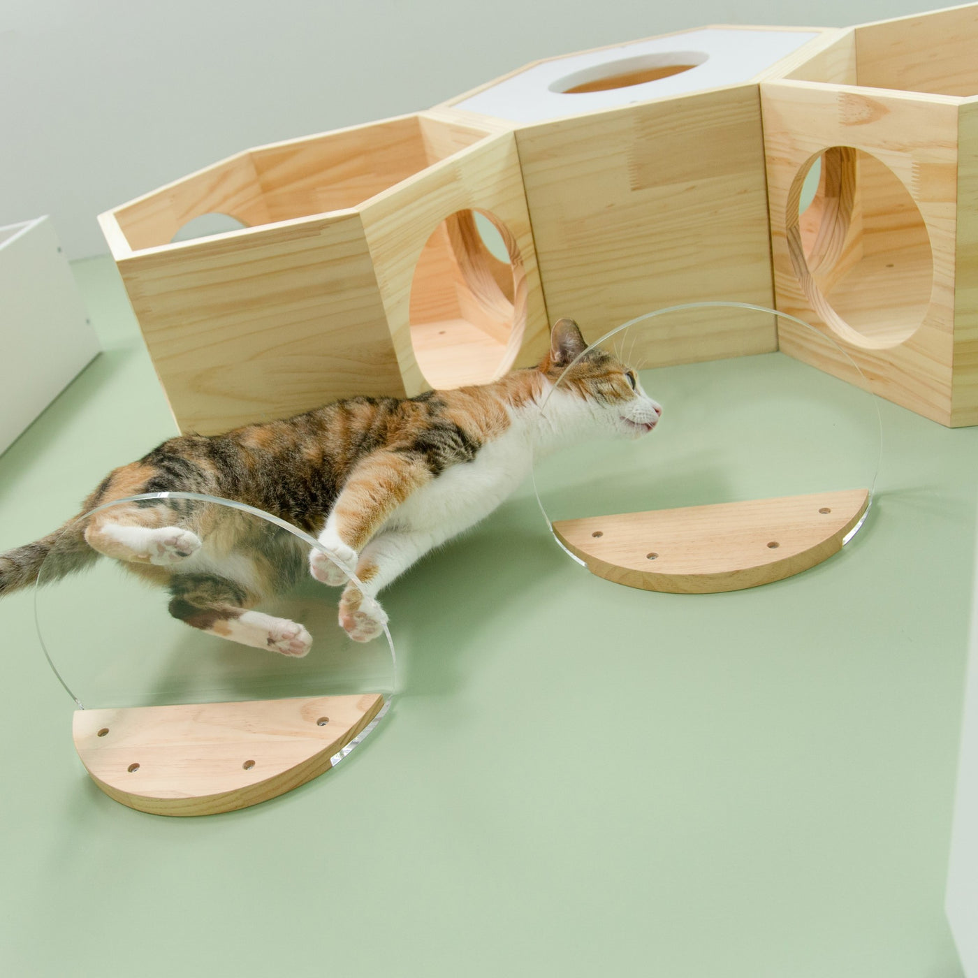 踏み台部分は透明な仕様のため、下から見上げると猫の可愛い肉球が見えます。