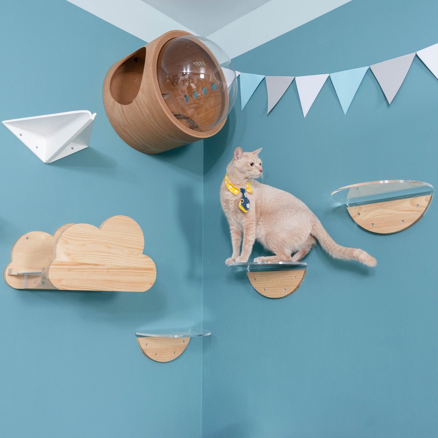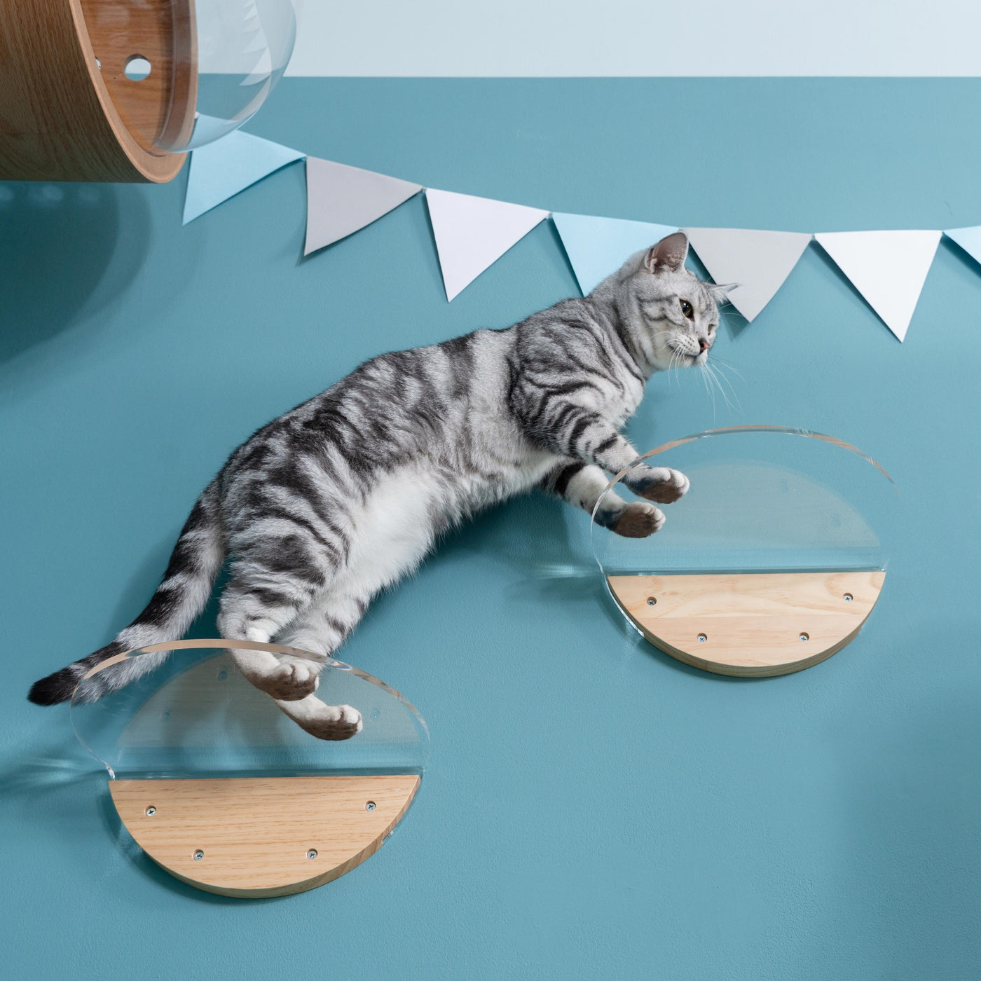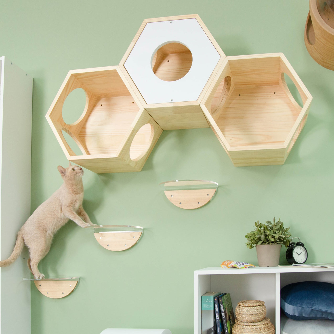 壁付けタイプのキャットタワーなのでスペースを取らず、室内飼いの猫の運動不足やストレスの解消に役立ちます。