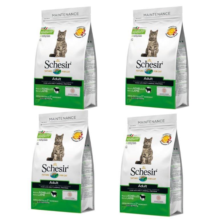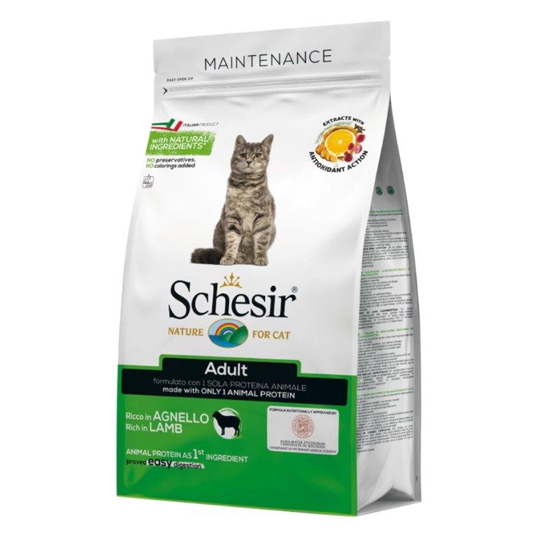 乾燥ラム20%、米、大麦、精製動物性油脂、ポテトプロテイン、コーングルテン、乾燥ビートパルプ、醸造酵母1%、亜麻仁、エンドウ粉、ヒマワリ油、フラクトオリゴ糖1%、チコリパルプ1%、ピロリン酸ナトリウム、塩化カリウム、ユッカシジゲラ0.1% ビタミン・ミネラル類:ビタミンA 31,000I.U、ビタミンD3 1,600I.U、ビタミンB6 10mg、ビタミンB12 0.09mg、葉酸1mg、ビオチン 0.28mg、ビタミンE 370mg、ビタミンC 200mg、タウリン 2,500mg、Fe (硫酸第一鉄)215mg、Cu(硫酸銅)11mg、Mn(硫酸マンガン)40mg、Zn(硫酸亜鉛)145mg、I(ヨウ素酸カルシウム)1.57mg、Se(亜セレン酸ナトリウム)0.42mg 技術的添加物:芳香植物抽出物(ブドウ、シトラス、クローブ、ウコン、ローズマリー)300mg